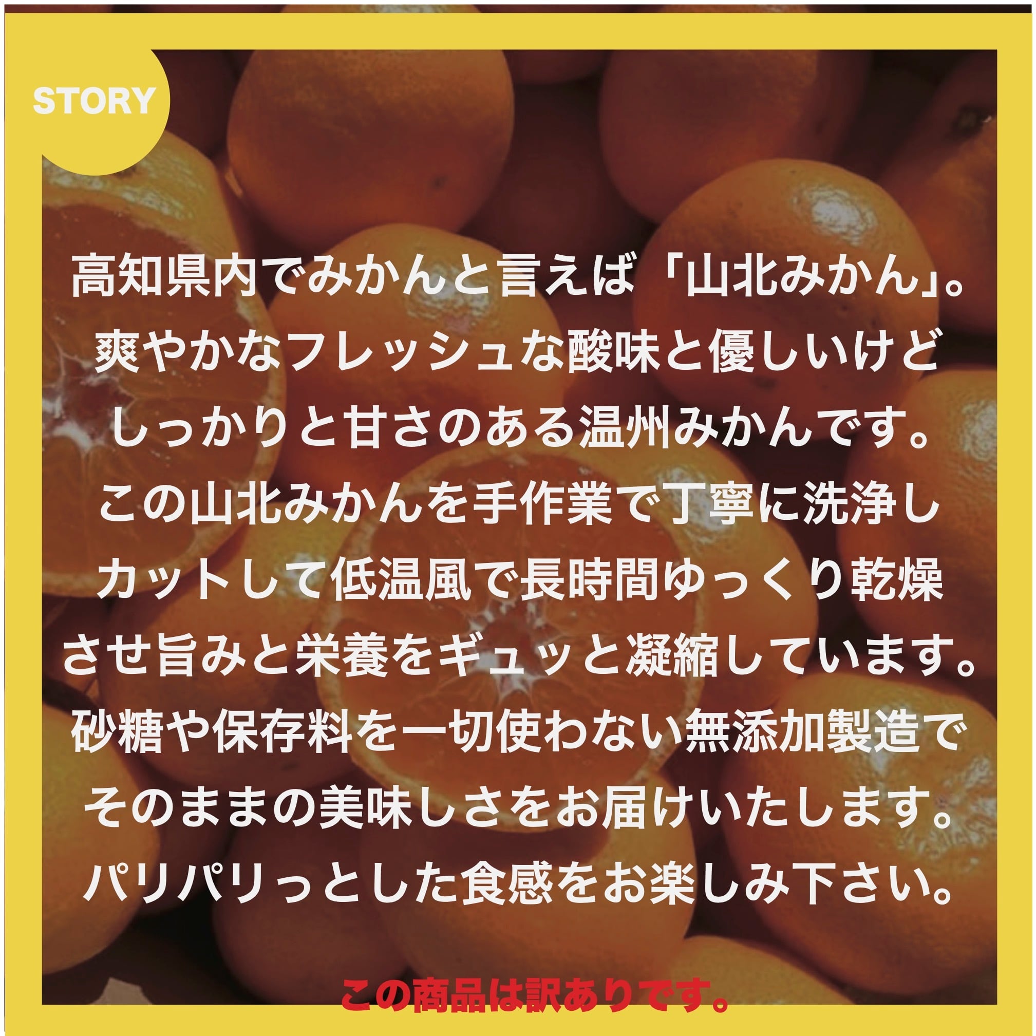 高知を代表する温州みかん「山北みかん」のドライみかんチップスです。
